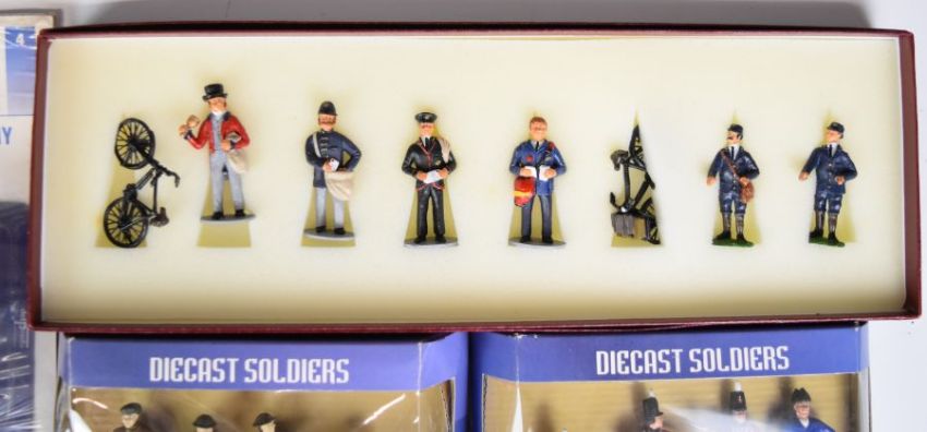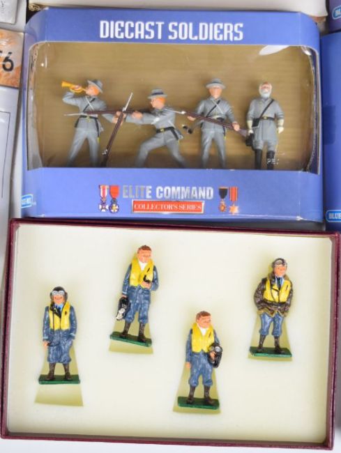 A collection of diecast soldiers by del Prado, Blue Box Elite Command and The BFM Collection, to include WW2, Roman and US Civil War examples.