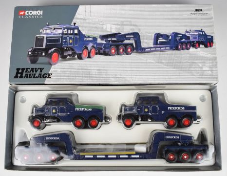 Three Corgi Classics diecast model haulage vehicles to include Pickford's 2 Scammell Constructors and 24 Wheel Low Loader Set 17701, all in original boxes.