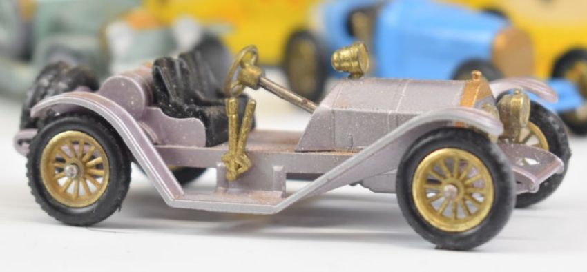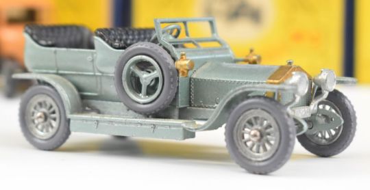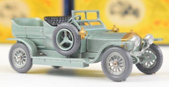 Seven Matchbox Lesney Models of Yesteryear diecast model cars comprising No.5 Le Mans Bentley, No 6 Supercharged Bugatti, No.7 Mercer 1913 Raceabout, No.8 Morris Cowley, No.10 Mercedes 1908 and x2 No.15 Rolls Royce Silver Ghost, all in original boxes.