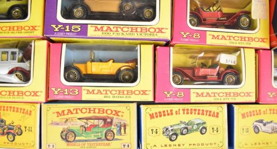 A collection of twenty five Matchbox Models of Yesteryear diecast model cars to include 1929 4.5 Litre Bentley Y-5, 1909 Thomas Flyabout Y-12 and 1911 Daimler Y-13 together with a King Size KW Dart Dump Truck K-2, all in original boxes.