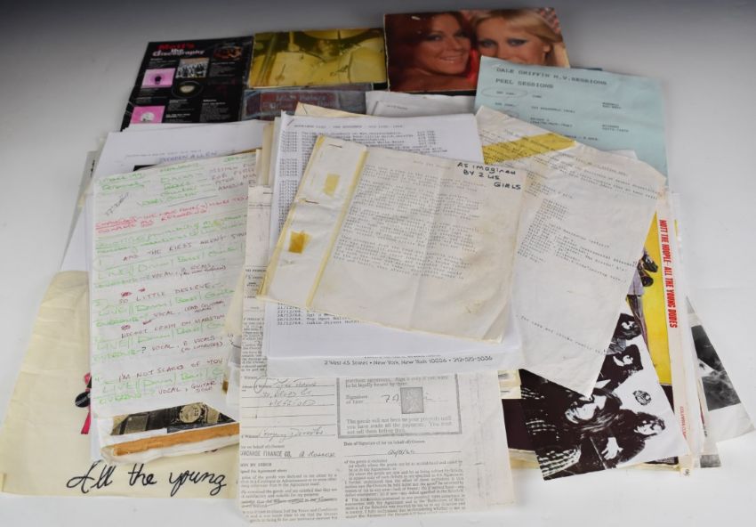 A collection of mostly music related memorabilia and ephemera including Mott the Hoople, The Soulents, The Silence, British Lions, John Peel etc. Formerly the property of Terence Dale Griffin (Buffin) Mott the Hoople drummer