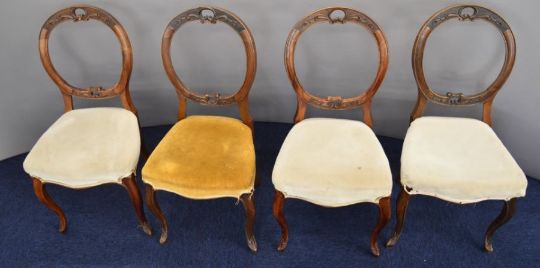 Four Victorian balloon back chairs and a bergère armchair