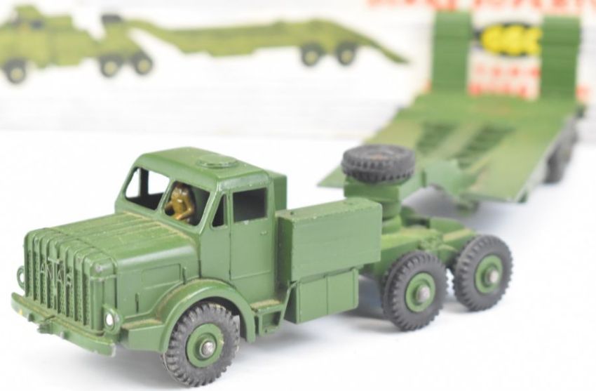 Three Dinky Toys diecast military vehicles comprising 10-Ton Army Truck 622, Recovery Tractor 661 and Medium Artillery Tractor 689, all in original boxes.