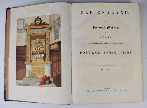 Old England A Pictorial Museum of Regal, Ecclesiastical, Baronial, Municipal and Popular Antiquities published Charles Knight 1845 in 2 volumes illustrated with colour chromos and black & white engravings, bound in half leather marbled boards with raised bands leather labels and gilt spines (folios). Rev. Fleetwood A New & Complete History of The Holy Bible from the creation of the World, printed for J. Cooke 1766 illustrated with engraved plates, in a broken leather binding together with a Victorian leather bound photograph album with numerous photographs including football team, motorcycle, boxer, penny farthing etc