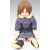 Goss English bisque headed doll marked GOSS 21 on shoulders, with cloth body, fixed blue eyes, long brown hair and navy pin striped dress, height 60cm.