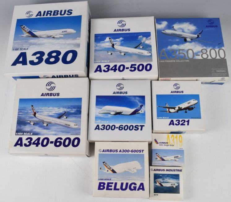 Nine Dragon and Herpa diecast model Airbus aeroplanes to include A380, A340-500 and A321, all in original boxes.