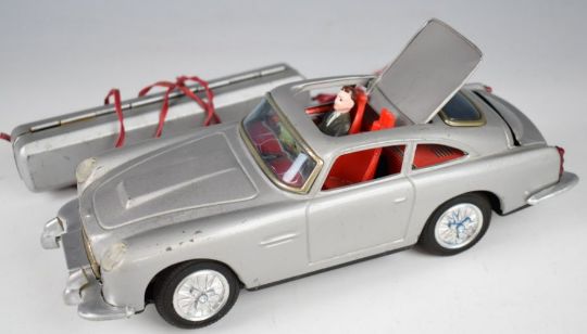 James Bond Aston Martin DB5 Japanese battery operated tinplate car, with remote control.