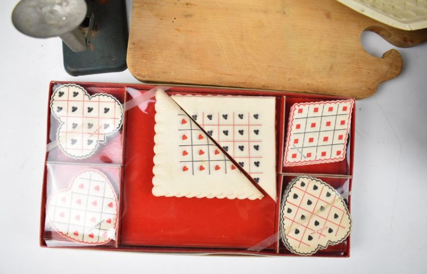 Kitchenalia and collectables to include Jiffy egg scales, cast iron baking or similar moulds, cased set of pastry cutters, cocktail set etc