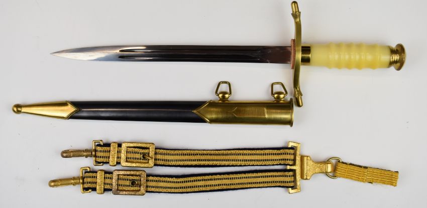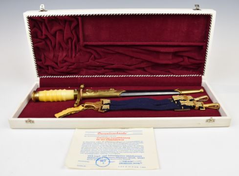 East German Admiral's cased honour dagger with straps and scabbard, blade length 25cm. PLEASE NOTE ALL BLADED ITEMS ARE SUBJECT TO OVER 18 CHECK ON COLLECTION OR DELIVERY