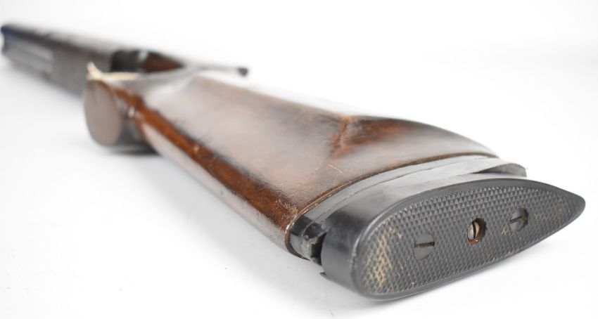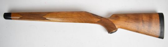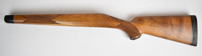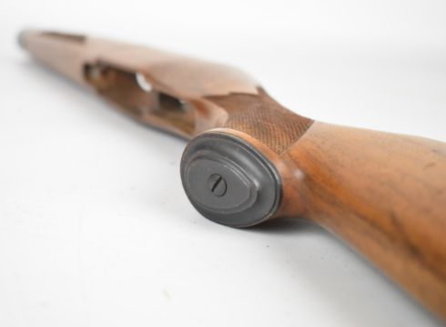 Two rifle stocks, one for an Anschutz target rifle with textured semi-pistol grip and forend, raised cheek piece and adjustable butt the other for a sporting rifle with chequered semi-pistol grip and forend.