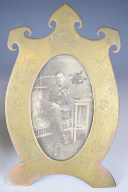 WW1 Worcestershire Regiment interest soldier's autograph book for 31442 Pte A J Bennett, 9th Worcesters, sent to him by his sister whilst he was in Victoria Hospital, Bombay, containing messages and drawings from various units including 7th Glosters, 9th Worcesters, 7th North Staffs, RAMC and Northamptonshire Regiment etc, together with two photographs / postcards of Pte Bennett in contemporary frames