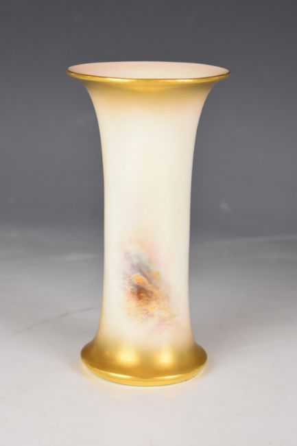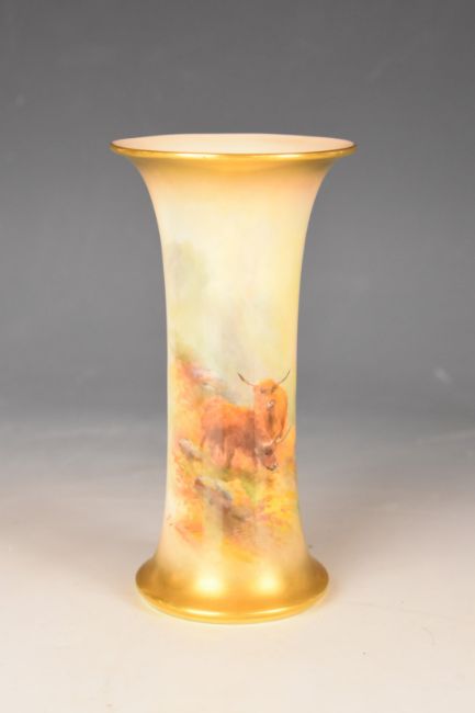 Royal Worcester flared vase decorated with Highland cattle signed James Stinton, height 15.5cm
