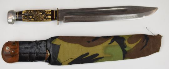 Bowie knife by Jacobs & Co, Solingen with horn or similar handle, blade length 26cm, with sheath. PLEASE NOTE ALL BLADED ITEMS ARE SUBJECT TO OVER 18 CHECK ON COLLECTION OR DELIVERY