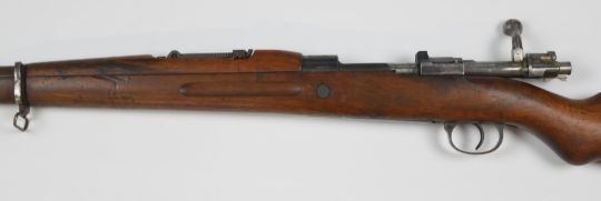 Peruvian Mauser 7.62x53mm bolt-action rifle with military crest and 'Republica Peruana' to the receiver, semi-pistol grip, sling mounts, adjustable sights and 24 inch barrel, overall length 109.5cm, serial number 12044. PLEASE NOTE THAT A VALID RELEVANT FIREARMS/SHOTGUN CERTIFICATE IS REQUIRED TO HANDLE/PURCHASE THIS ITEM.
