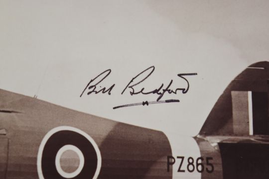 Royal Air Force WW2 interest signed photograph by Douglas Bader of two Hurricanes, 47 x 35cm