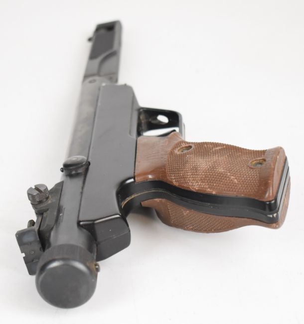 Original Model 6 .177 target air pistol with shaped and chequered grip and adjustable sights and trigger, serial number 16693.