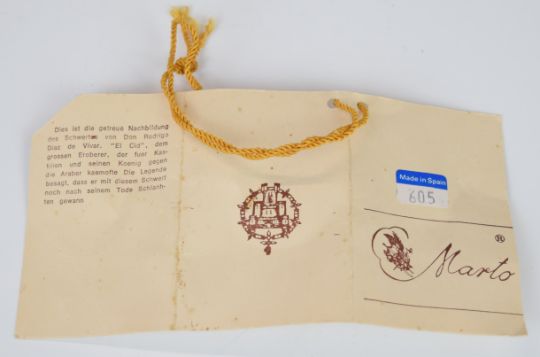 Two replica swords by Marto, one as used by Charles V of Spain, blade length 83cm, the other as used by 'El Cid' Don Rodrigo Diaz de Vivar, blade length 80cm. PLEASE NOTE ALL BLADED ITEMS ARE SUBJECT TO OVER 18 CHECK ON COLLECTION OR DELIVERY