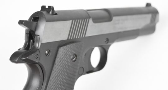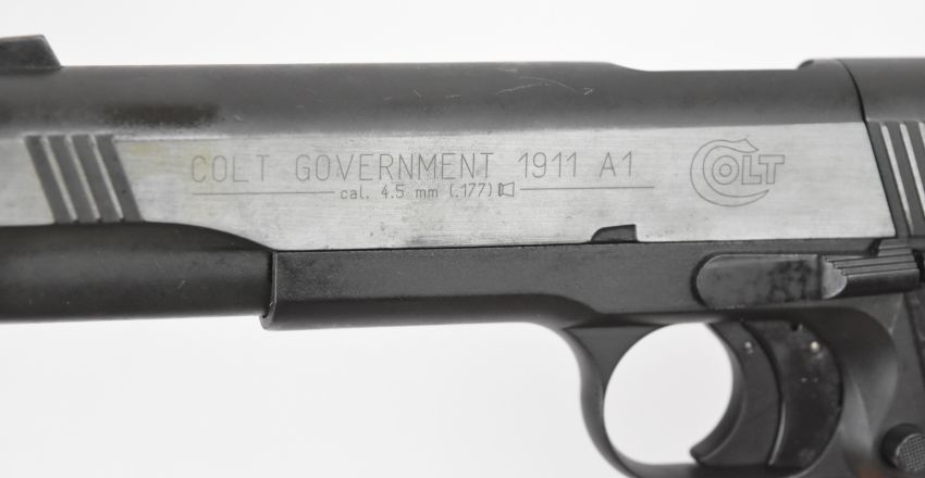 Umarex Colt Government 1911 A1 .177 COair pistol with chequered composite grips and two 8-shot magazines, serial number FG20175222, in original padded hard carry case. .
