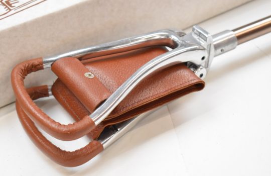 Four Gamebird shooting sticks H01 LC, H8 S, H01 and one other, all with leather seats and handles, all unused in original boxes/ packaging.