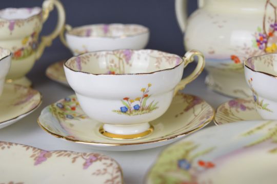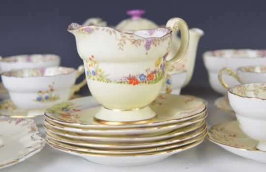 Paragon Art Deco porcelain tea set with enamelled floral decoration, 22 pieces, tallest 14cm