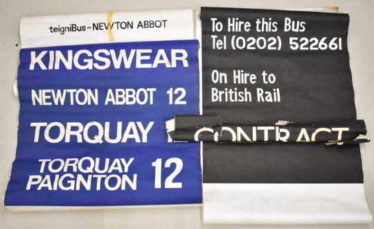 Four bus destination blinds to include Newton Abbot, Kingswear, Torquay and Paignton
