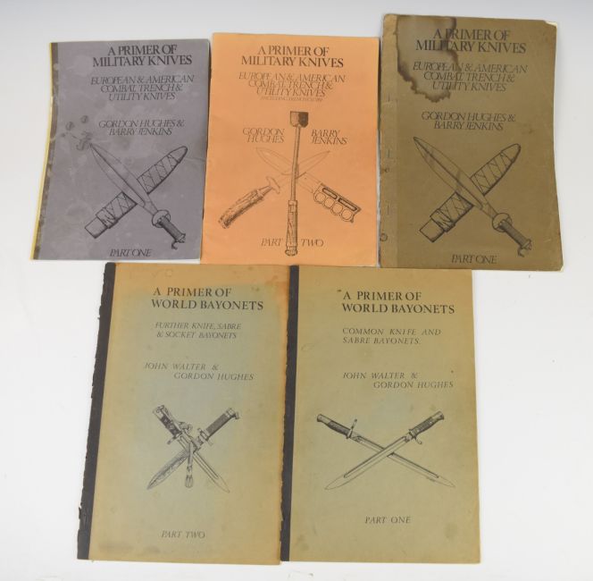 Small collection of military reference books including British Military Bayonets From 1700 to 1945 by R J Wilkinson Latham, Islamic Arms by Anthony North, World Swords 1400-1945 An Illustrated Price Guide For Collectors by Harvey J S Withers, Badges Of The British Army by F Wilkinson, Part One and Part Two of A Primer Of Military Knives European & American Combat, Trench and Utility Knives by Gordon Hughes & Barry Jenkins, Part One and Part Two of A Primer Of World Bayonets, Common Knife And Sabre Bayonets by John Walter & Gordon Hughes, Air Raid Precautions Handbook Number 1, Personal Protection Against Gas, Infantry Training Volume 1 etc