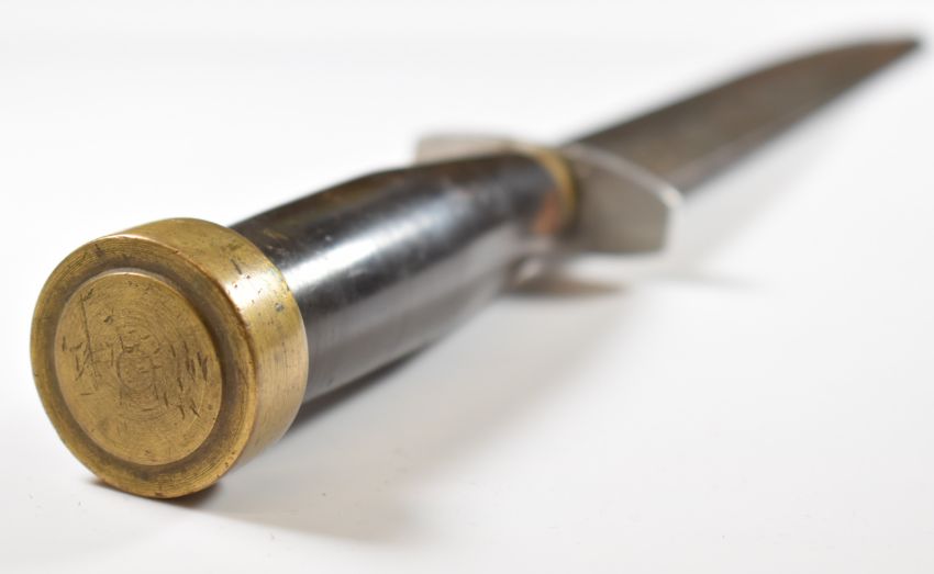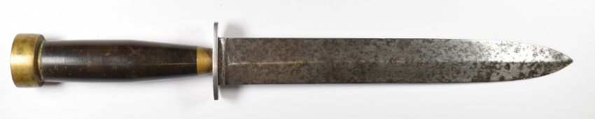 Two trench / fighting knives, both with wood grips and double edged blades, longest blade 21cm. PLEASE NOTE ALL BLADED ITEMS ARE SUBJECT TO OVER 18 CHECK ON COLLECTION OR DELIVERY