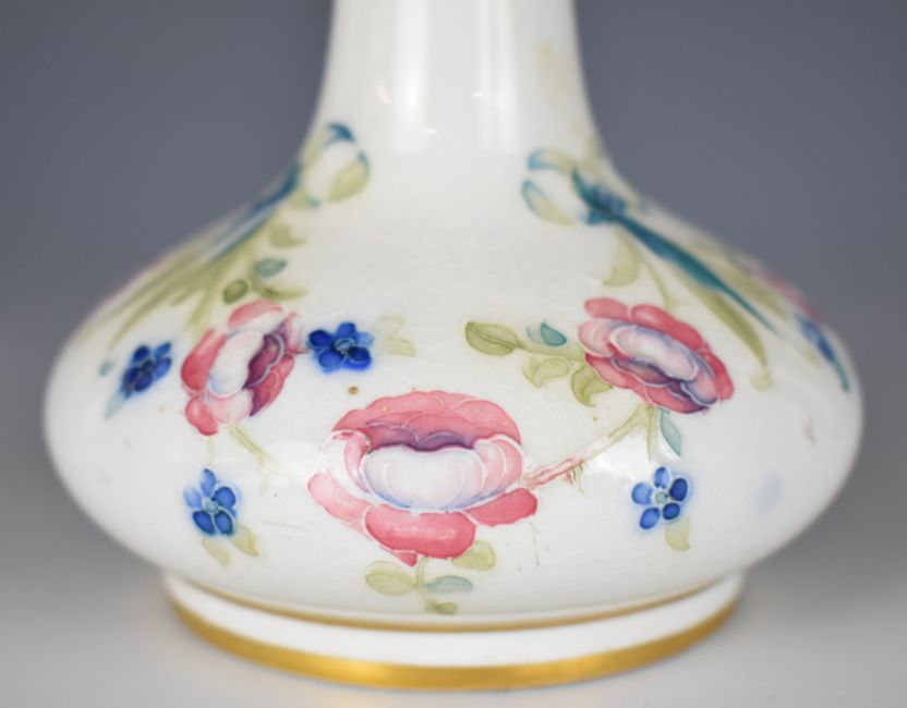 William Moorcroft for Macintyre signed Florianware pedestal vase with flared and frilled neck, 'Made for E Williams, Newport' to base, height 20cm
