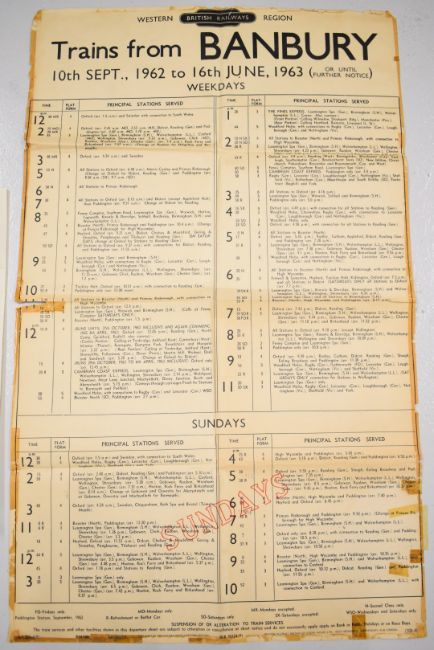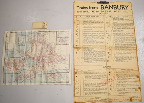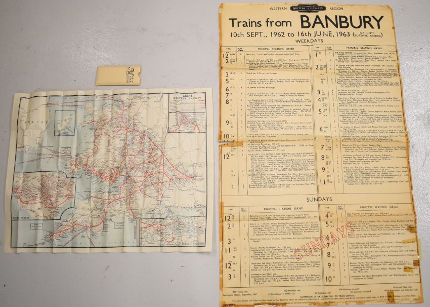 British Railways trains from Banbury 1963 poster, 98 x 59cm together with Great Western Railway map of system, in original pouch