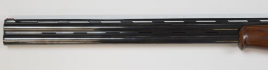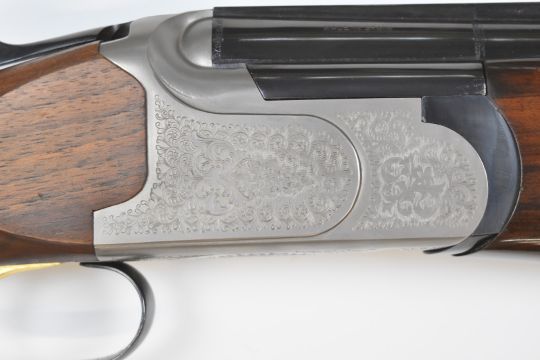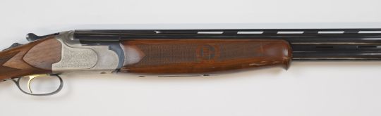 Lanber 12 bore over and under ejector shotgun with engraved locks, trigger guard, underside and thumb lever, chequered semi-pistol grip and forend, vented top and central ribs, single trigger and 30 inch multi-choke barrels, overall length 1120cm, length of pull 36.5cm, serial number 13-03-08544-03. PLEASE NOTE THAT A VALID RELEVANT FIREARMS/SHOTGUN CERTIFICATE IS REQUIRED TO HANDLE/PURCHASE THIS ITEM.