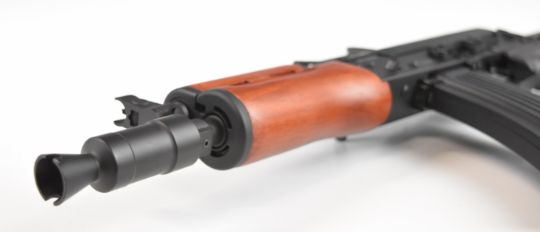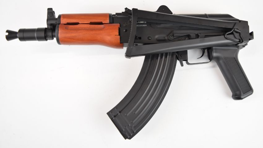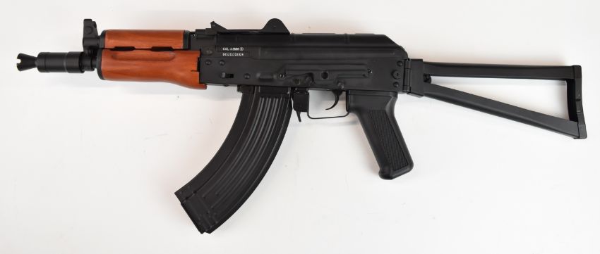 Cybergun Kalashnikov AK47 .177 COair rifle with wooden pistol grip and stock, sling mounts and adjustable sights, serial number 242022027500023, in original box with instructions.