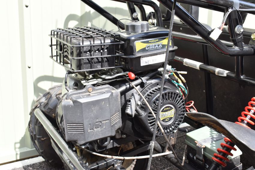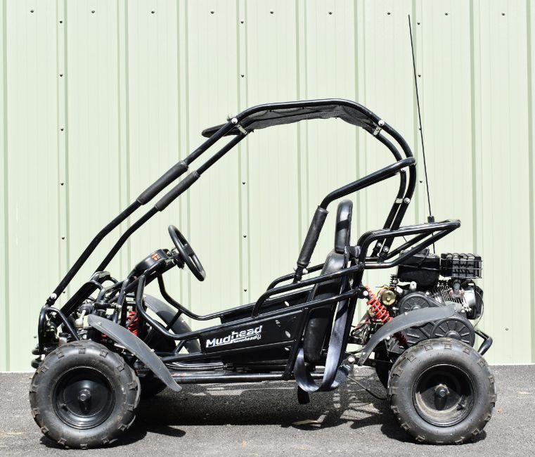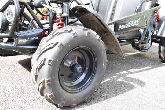 Hammerhead Mudhead 200cc child's or teenage petrol powered off road buggy, with electric start, rear disc brake and front and rear suspension, with operators manual etc. Purchased by the vendor for their grandchildren, who have now outgrown it, though it is possible for an adult to drive (as verified by us at the auction, merely in the name of research you understand) it's size would best suit a teenager. 10%+VAT buyers premium on this lot
