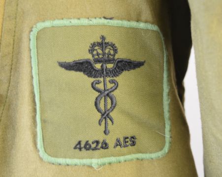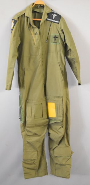 Royal Air Force air crew coveralls, size 7, retaining badges / insignia for 4626 Squadron Aeronautical Evacuation Squadron Royal Auxiliary Air Force and survival knife by Joseph Rogers, Sheffield with serial number 22c/1278106 and broad arrow mark