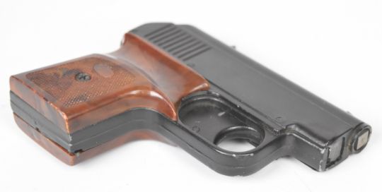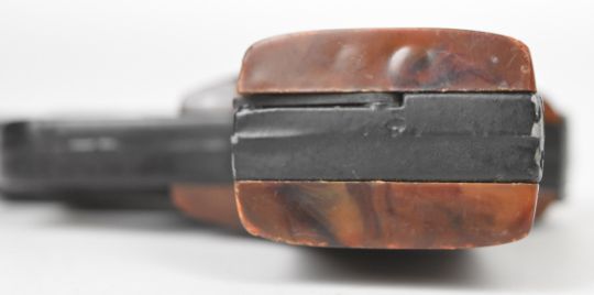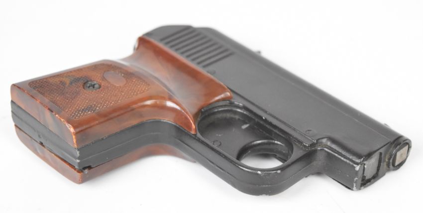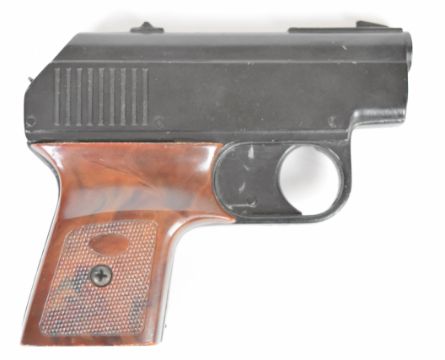 Unnamed .22 blank firing starting pistol with chequered faux wooden grips, NVSN.