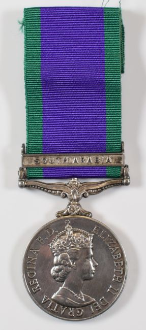 Royal Air Force Elizabeth II General Service Medal with clasp for South Arabia named to 0687895 Junior Technician G D Lister, RAF