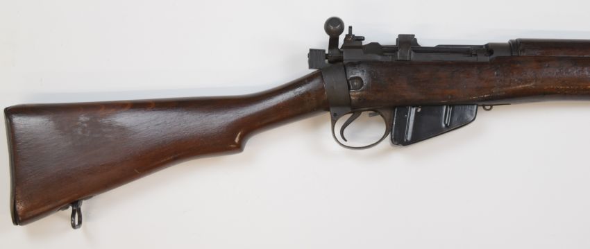Short Magazine Lee Enfield (SMLE) No 4 Mk 1 Long Branch .303 smooth bore bolt-action gun with fixed sights, storage compartment to the butt plate and 25 inch barrel, overall length 112cm, serial number 88L8653. PLEASE NOTE THAT A VALID RELEVANT FIREARMS/SHOTGUN CERTIFICATE IS REQUIRED TO HANDLE/PURCHASE THIS ITEM.