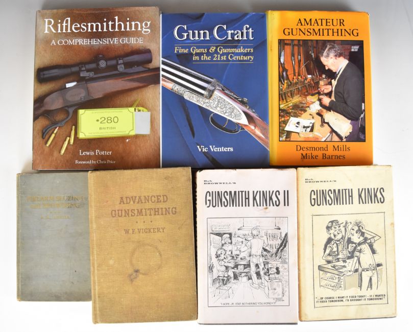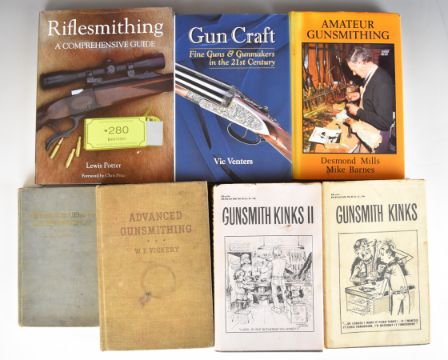 Seven Gunsmithing books comprising Gunsmith Kinks volumes I & II, Riflesmithing A Comprehensive Guide, Amateur Gunsmithing, Gun Craft, Advanced Gunsmithing and Firearm Blueing and Browning.