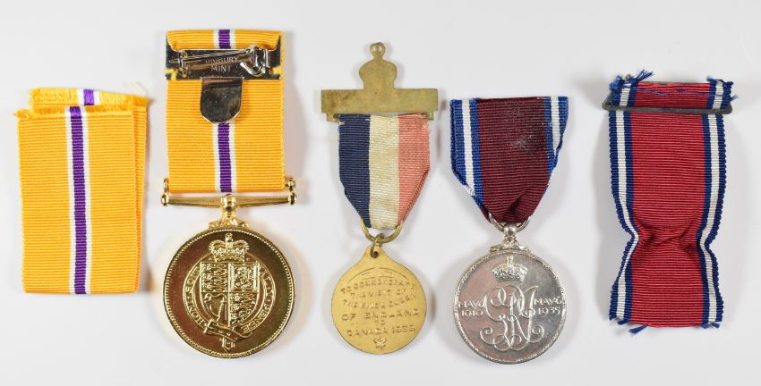 George V Silver Jubilee medal with box, Royal visit to Canada 1939 medal and Bigbury Mint Queen's Golden Jubilee medal, in box
