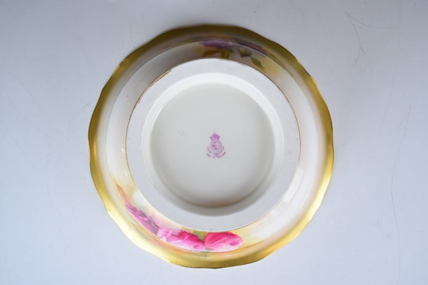 Royal Worcester pedestal bowl decorated with roses, signed M Hunt, diameter 23m