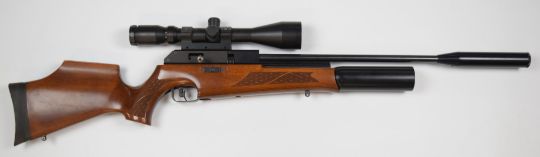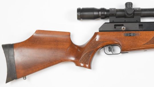 BSA R-10 SE .22 PCP FAC air rifle with chequered semi-pistol grip and forend, sling mounts, adjustable trigger, raised cheek-piece, 10-shot magazine and BSA Essential scope, serial number DP13323. PLEASE NOTE THAT A VALID RELEVANT FIREARMS/SHOTGUN CERTIFICATE IS REQUIRED TO HANDLE/PURCHASE THIS ITEM.