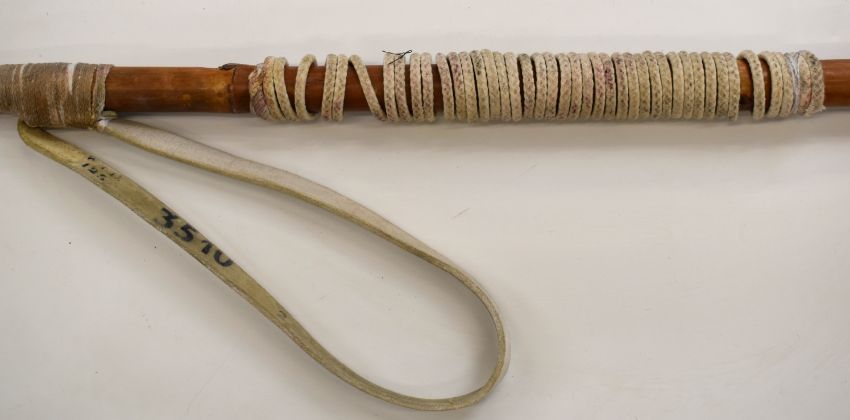 British Army Cavalry lance with bamboo shaft, metal spear point head and red and white pennon, length 274cm. PLEASE NOTE ALL BLADED ITEMS ARE SUBJECT TO OVER 18 CHECK ON COLLECTION OR DELIVERY