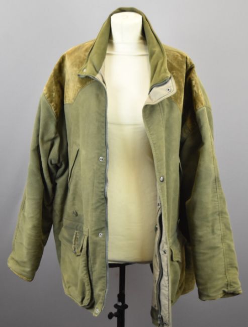 Cold weather canvas lined coat, together with a Deer Hunter shooting / outdoors coat and three NATO protective combat jerkins