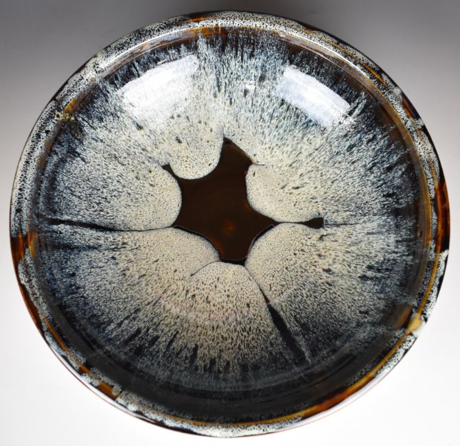 Winchcombe Pottery bowl with radiating glaze by David Wilson, height 10cm x diameter 30cm