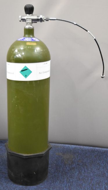 12.2 litre 13.5kg compressed air bottle suitable for re-filling PCP air rifles with pressure gauge, charging hose and test certificate dated January 2026.