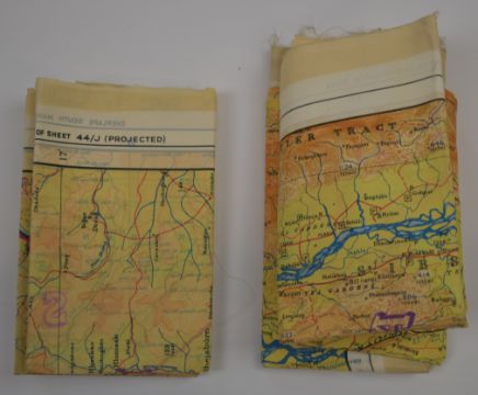 Two British double sided colour printed escape and evasion maps of Burma, Siam, French Indo China (part) and China (part), 44A, 44B, 44C and 44D, 95 x 60cm