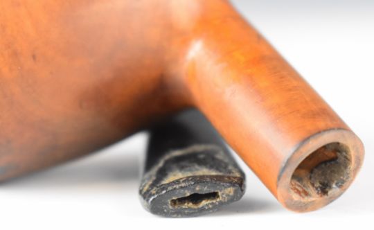 WW2 Special Operations Executive (S.O.E) smoking pipe dagger with removable ebonised mouthpiece concealing a 5cm fullered blade, overall length 14.5cm.