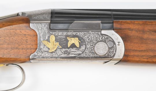 Beretta Ultra Light Deluxe 12 bore over and under ejector shotgun with gold bird engraved locks, named and engraved underside, engraved trigger guard, thumb lever and fences, chequered semi-pistol grip and forend, vacant cartouche to the underside of the stock, single gilt trigger, vented top rib and 28 inch barrels choked ¼ and ¾, overall length 114cm, length of pull 35.5cm, serial number U27235B, in original fitted case. PLEASE NOTE THAT A VALID RELEVANT FIREARMS/SHOTGUN CERTIFICATE IS REQUIRED TO HANDLE/PURCHASE THIS ITEM.