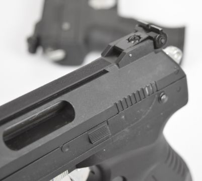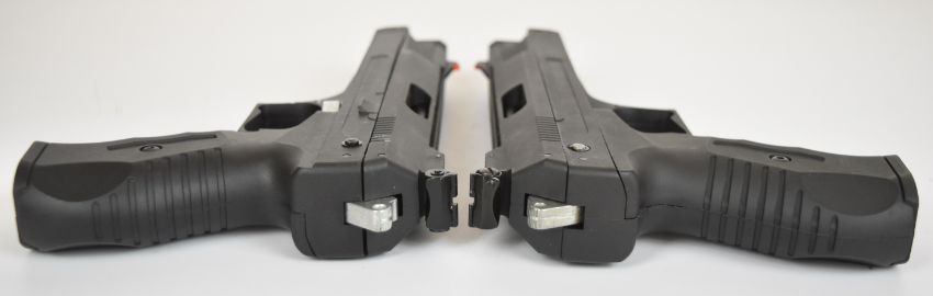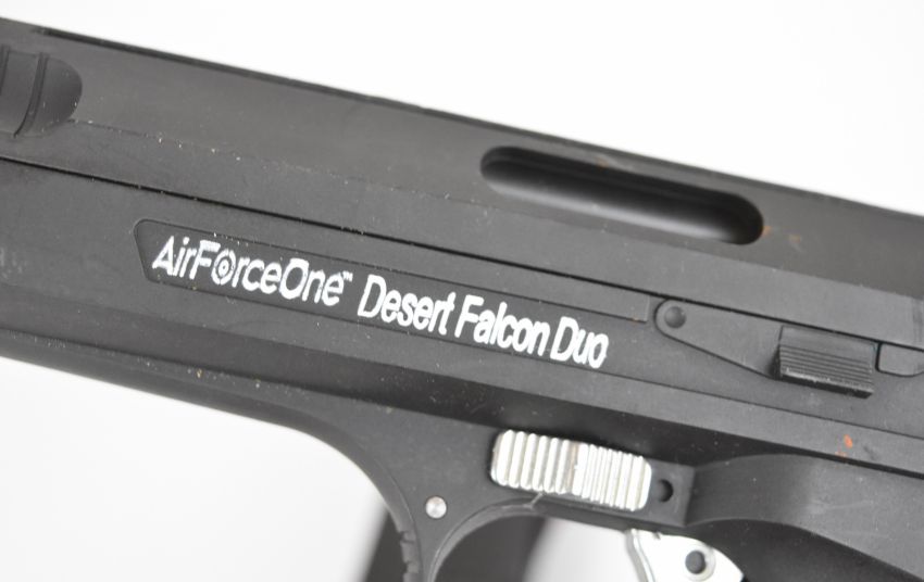 A pair of Air Force One Desert Falcon Duo .177 PCP air pistols, each with composite grip and adjustable sights, NVSN.