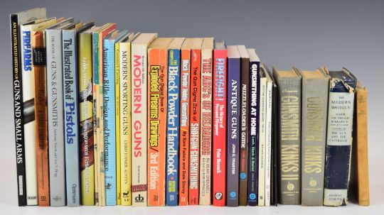 Thirty gun, gunsmith and shooting related books including Modern Sporting Guns, The Complete Black Powder Handbook, Gunsmithing at Home, Muzzleloader's Guide, Antique Guns, The Book of Guns & Gunsmiths, Guns And Gunmaking Tools Of Southern Appalachia, The Illustrated Book of Pistols, Gunsmith Kinks, The Sporting Rifle in Britain (signed) etc.