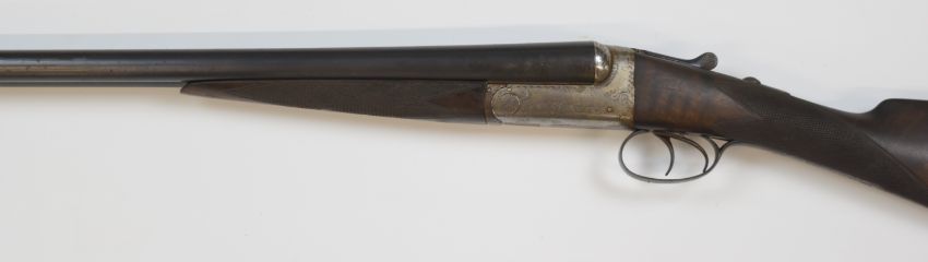 The Payne Gun Co of Birmingham 12 gauge bore assisted-opening round action side by side ejector shotgun with engraved lock, underside, trigger guard, top plate, thumb lever and fences, chequered grip and forend, double trigger and named 30 inch barrels ½ and unchoked, overall length 119cm, length of pull 37.5cm, serial number 1015, in fitted leather carry case. PLEASE NOTE THAT A VALID RELEVANT FIREARMS/SHOTGUN CERTIFICATE IS REQUIRED TO HANDLE/PURCHASE THIS ITEM.